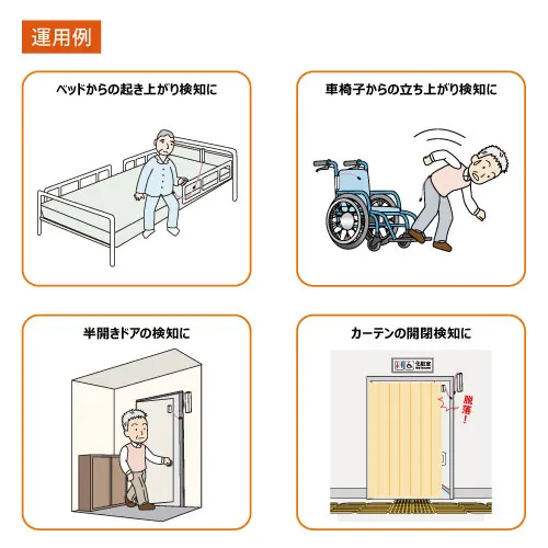 ・見えるひもセンサーを徘徊されたり、危険を知りたい場所に取り付け、介護者の負担を軽減します。